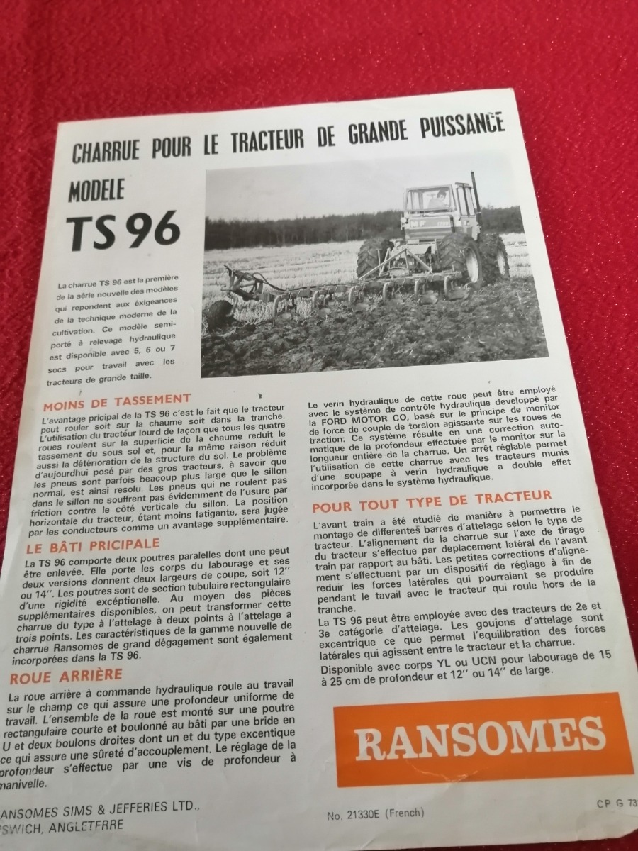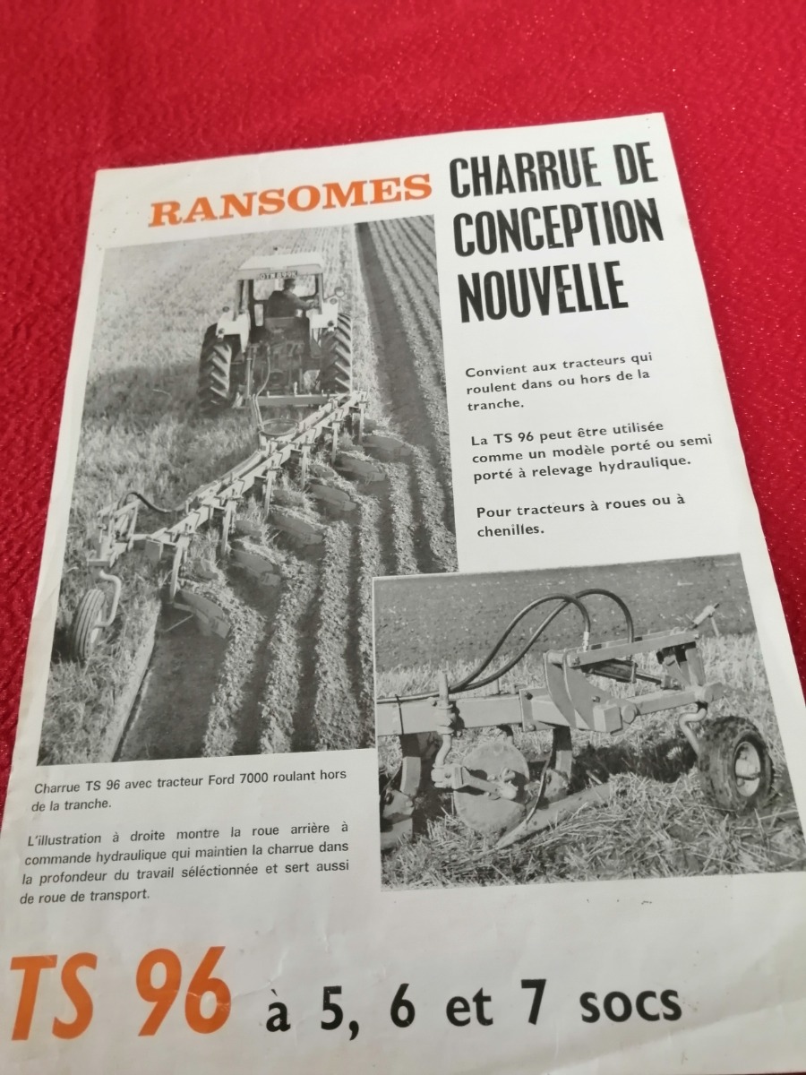 Prospectus Charrues Ransomes TS 96 à 5/6/7 socs , une feuille recto/verso ,bon état voir photos