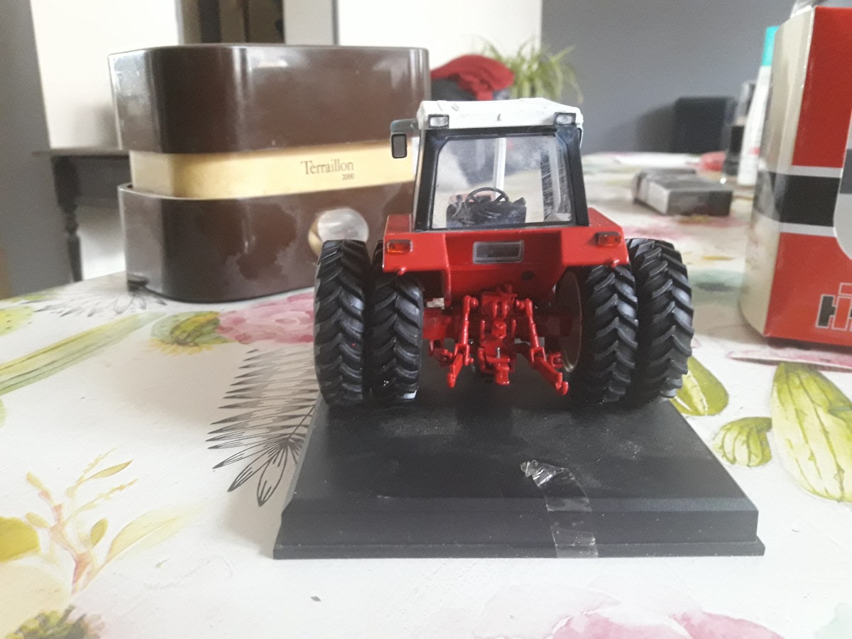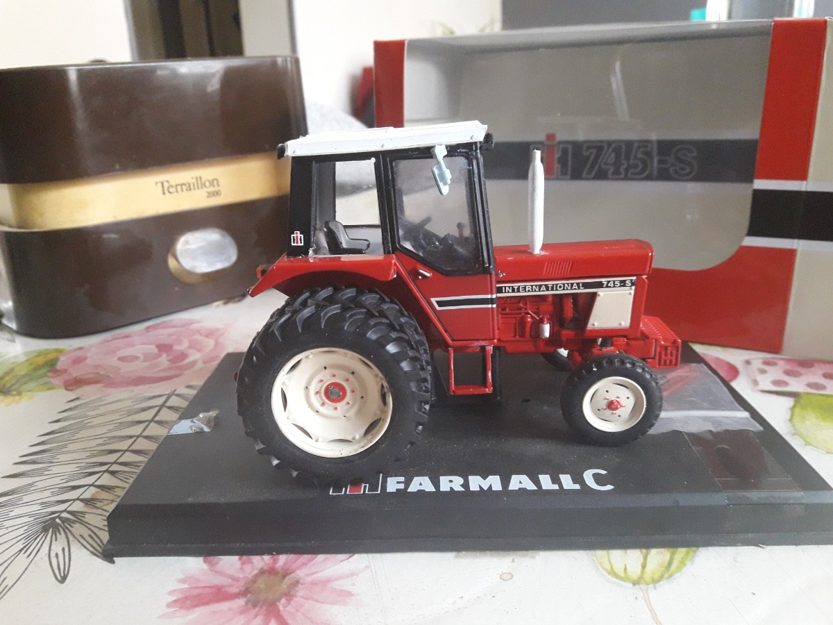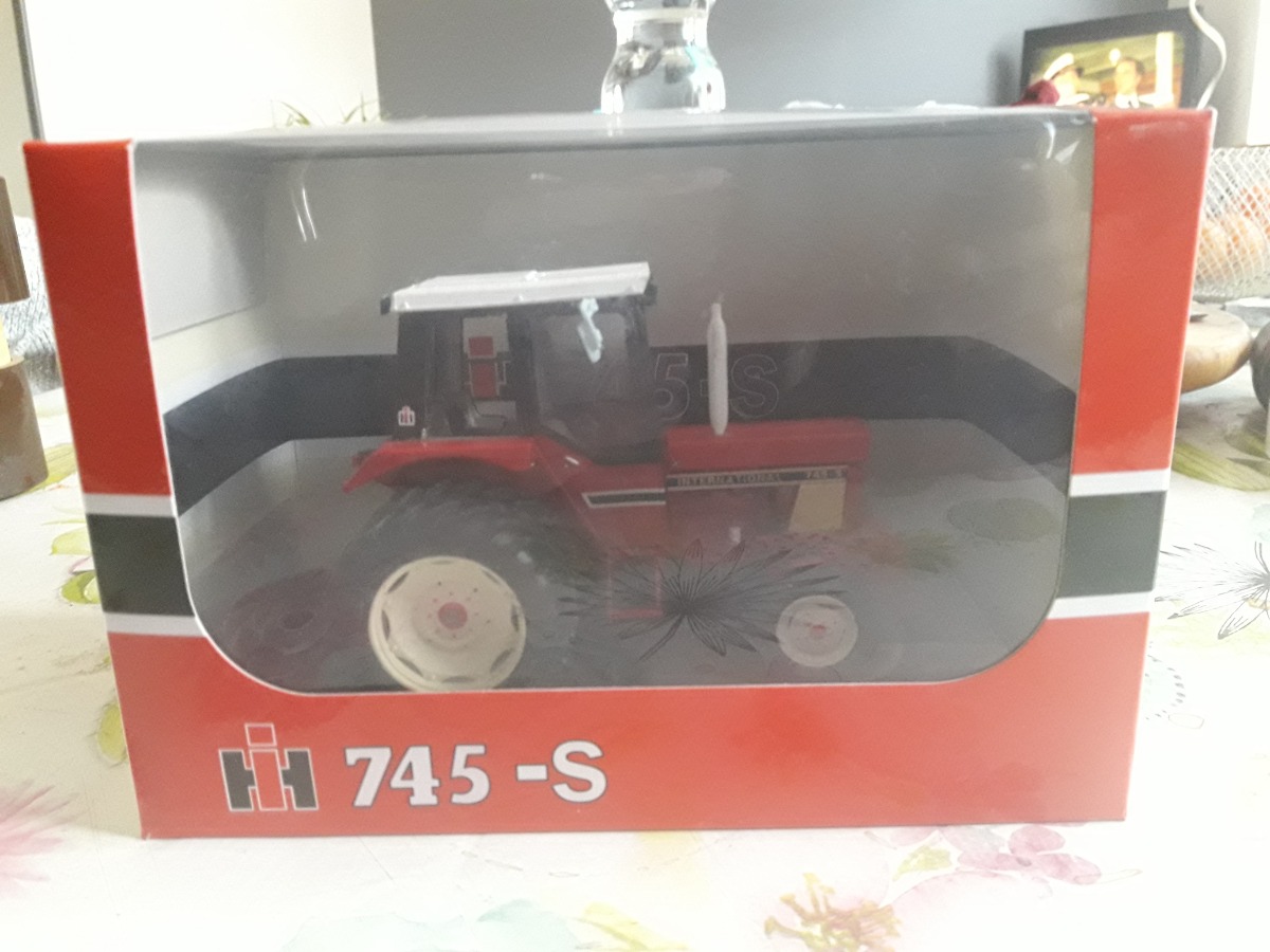 Tracteur ih 745s jumelé arrière avec sa boîte d origine. Mais pas sont socle d origine qui était cassé. Sera emballé avec soin