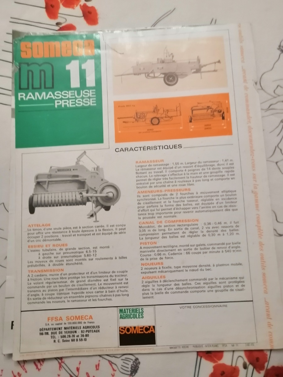 Prospectus presse SOMECA M11 une feuille recto verso bon état voir photos