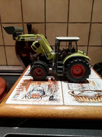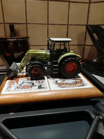 Avec chargeur, relevage avant, prise de force avant et le capot se lève. Il manque les autocollants des 2 rétroviseurs.