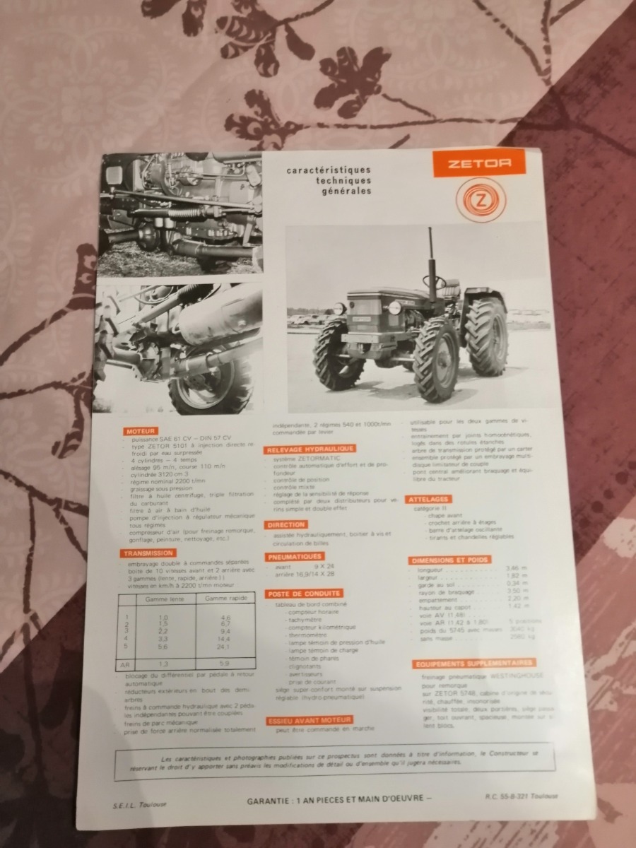 Prospectus tracteur Zetor 5745/5748 une feuille recto verso voir photo