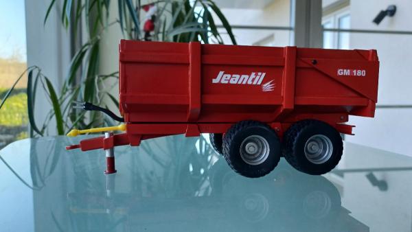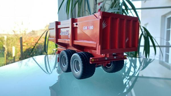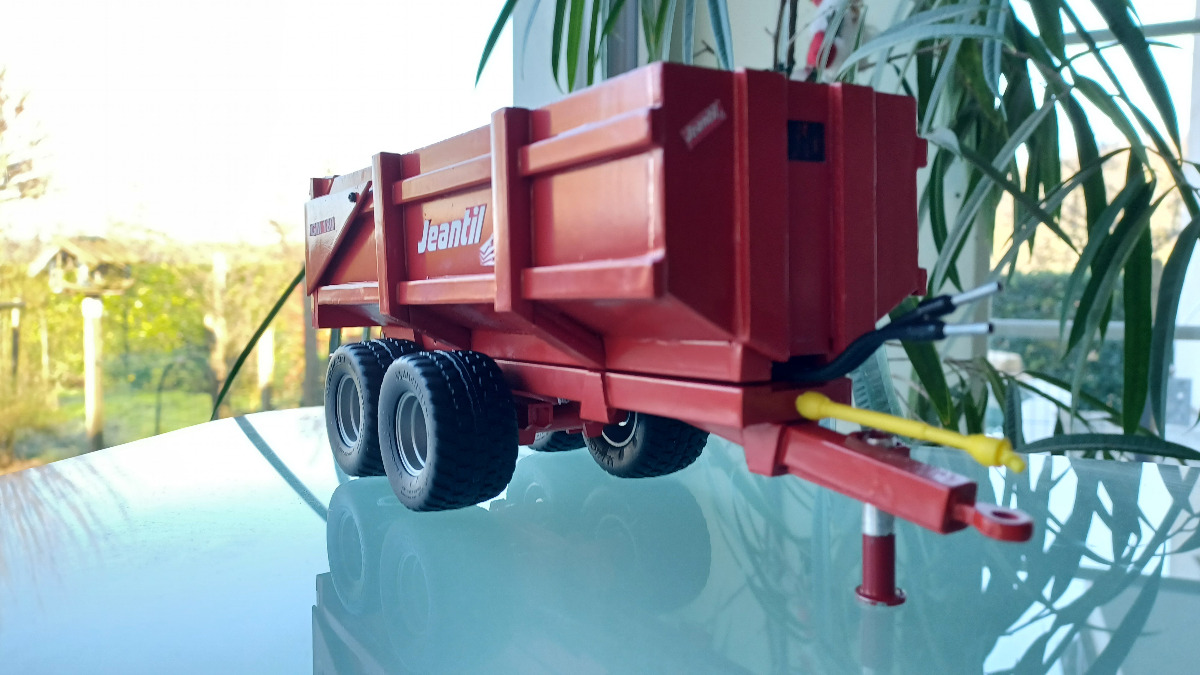 Benne Jeantil GM 180, ARTISANAL. Essieu boggie avec pneus Michelin diamètre 43,6 mm et 24,1 de large. Inspiration de cette réalisation est venu du jeu Farming simulator 17