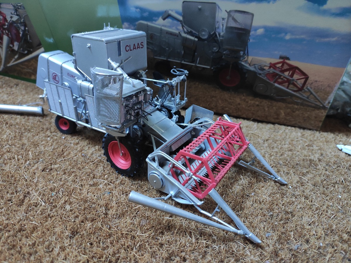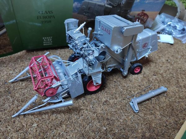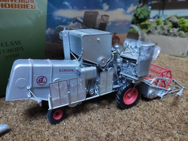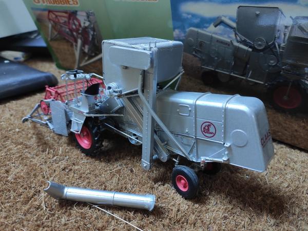 Moissonneuse Batteuse CLAAS Europa de 1958 en bon état général ( buse cassée à recoller et grille du moteur abîmée). Vendue dans sa boîte d'origine.