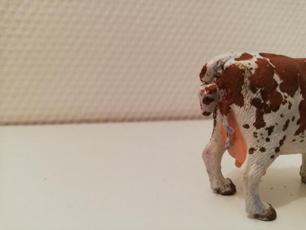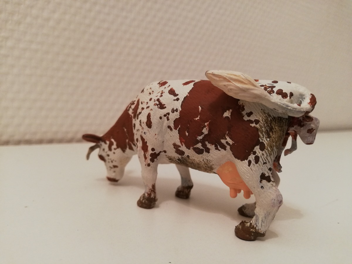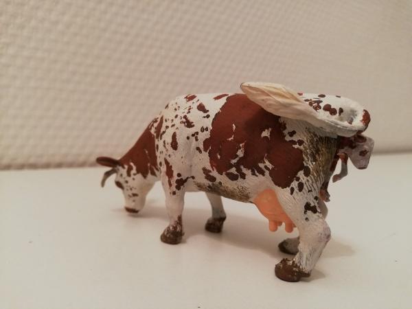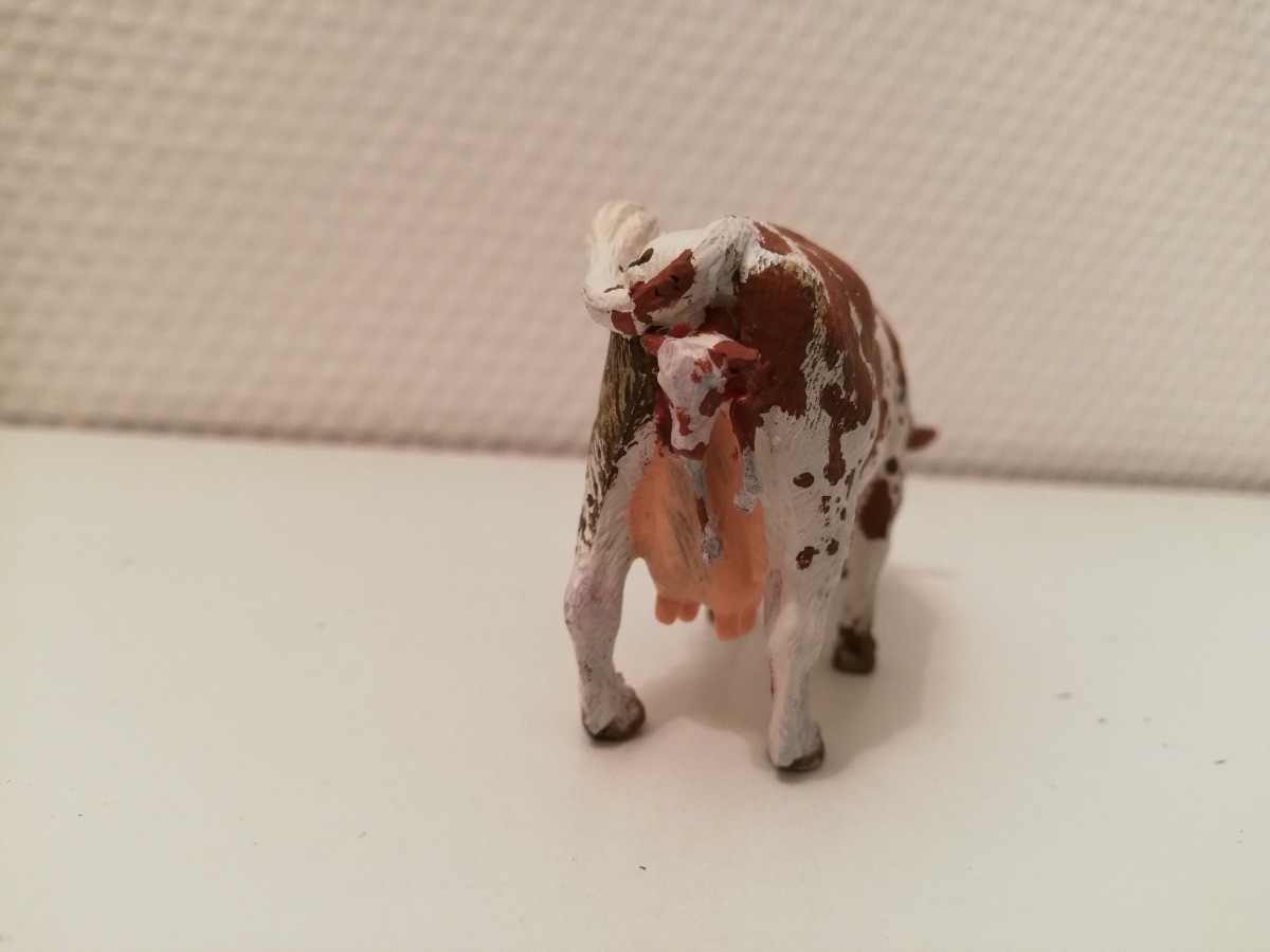 Vache normande en train de vêler