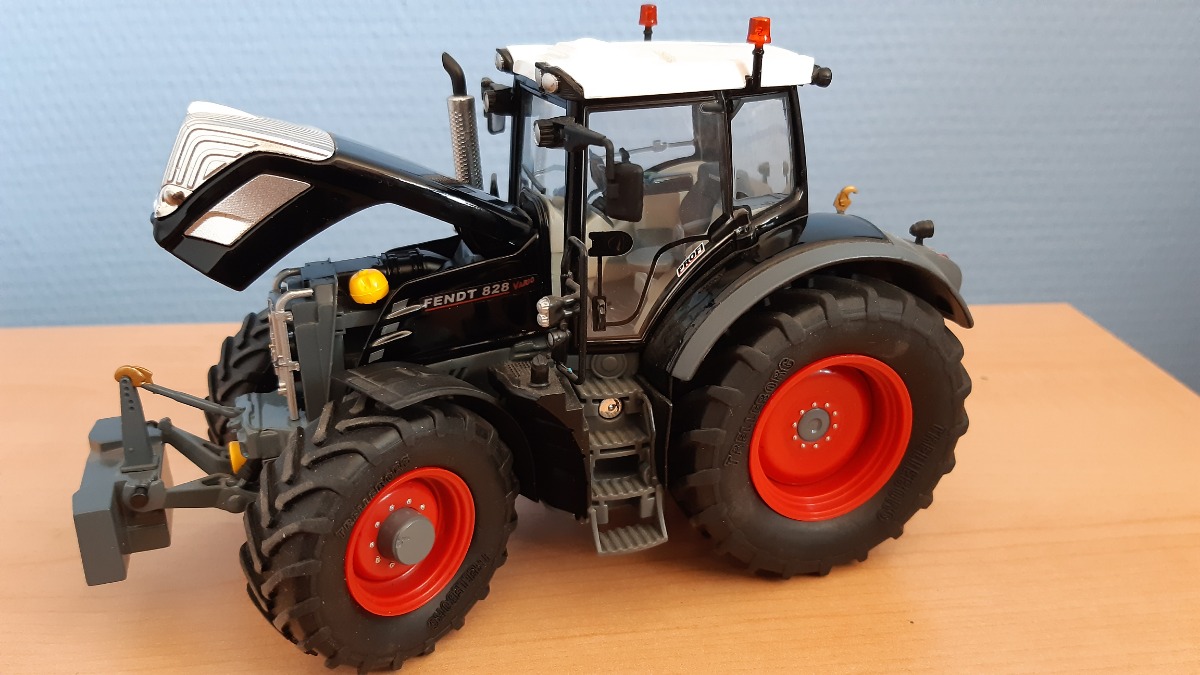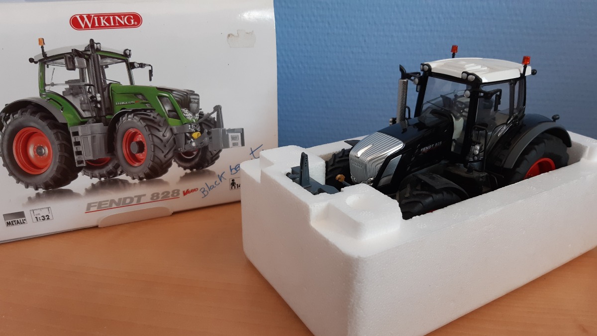 FENDT 828 en parfait état, aucune pièces abimée ou manquante (mais très légèrement poussiérieux) repeint en noir. Pas de défaut de peinture. Dans sa boite d'originie