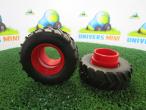 Jumelage amovible pour tracteur FENDT 516. Pneu et jante d'origine du tracteur. Le jumelage ne se fixe pas aux roues arrières du tracteur (ce n'est pas clipsable), il se pose simplement à coté pour donner l'illusion. Les tendeurs sont disponibles séparément sous la référence 25037.