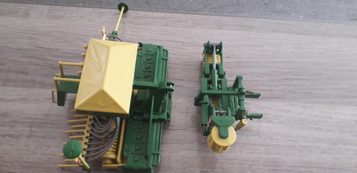 Descriptif: Spire AV repliable(3m) avec Béquille et Liserait blanc et rouge. COMBINER(Herse et Semoir modifié(Rajout d'1 rampe d'accès a la trémie, Feux peints(rouge orange) et Liserait blanc et rouge).Porte outils: CHASSIS EN laiton, Flèche et Essieu AR relevables(avec 3émes points fonctionnels) 2 Autocollants JOHN DEERE Feux AR peints(rouge orange) Bande rouge et blanche Plaque d'immatriculation Disque de vitesse(25KM/H).Voir photos le tout vendu tel que
