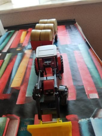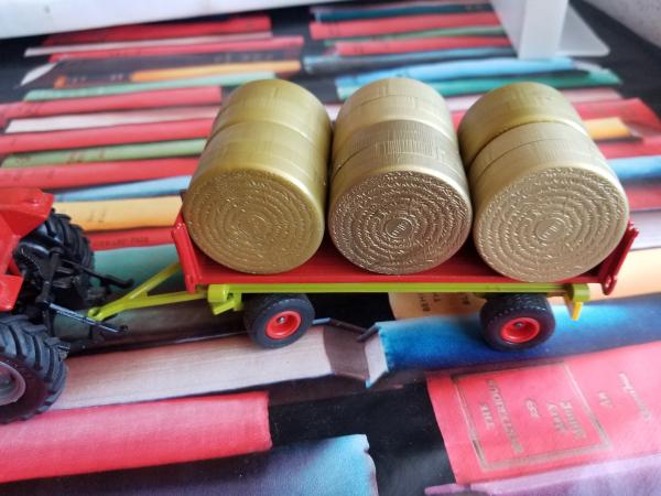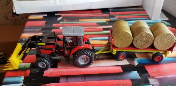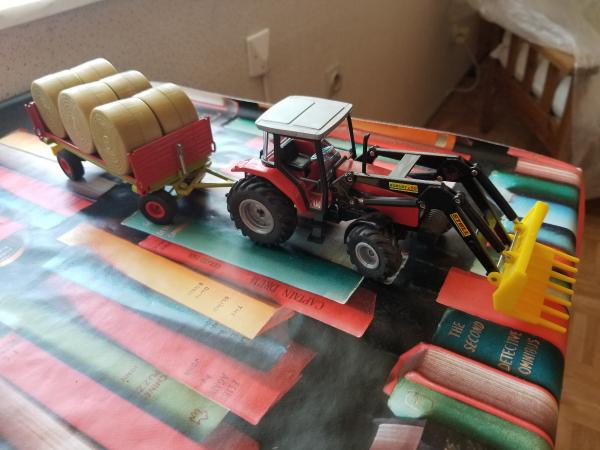 MASSEY-FERGUSON avec chargeur Stroll F50 + remorque plateau avec 6 ballots de pailles