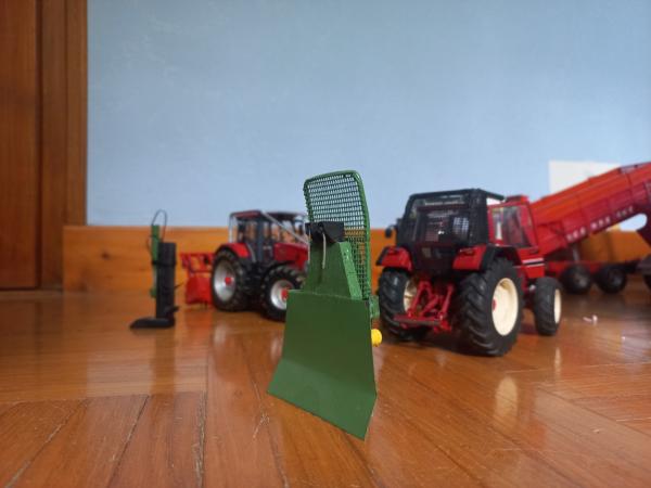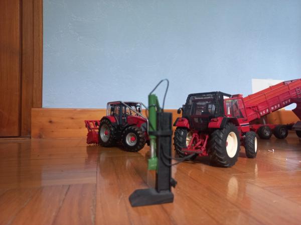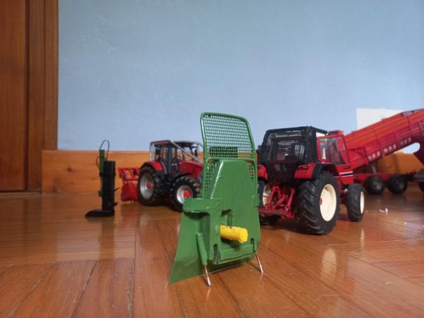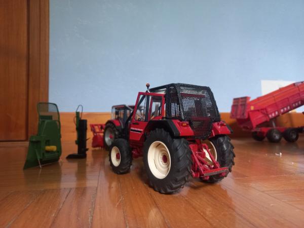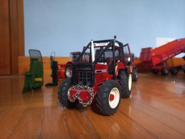 International 1455 xl équipe forestier. Il est accompagné d'un treuil,fendeuse, et broyeur forestier.