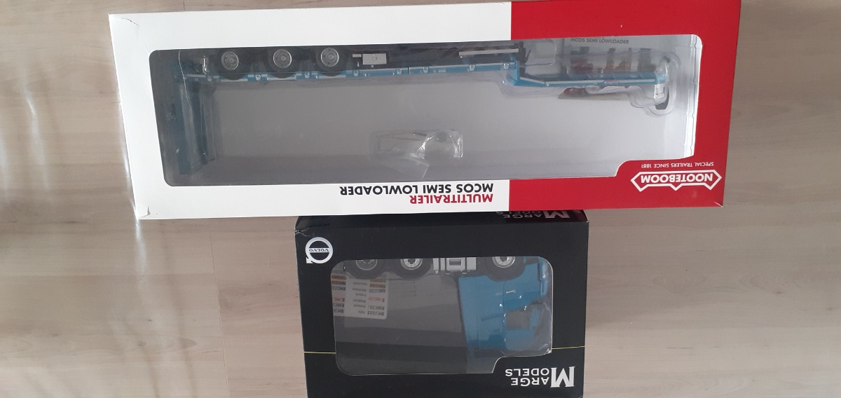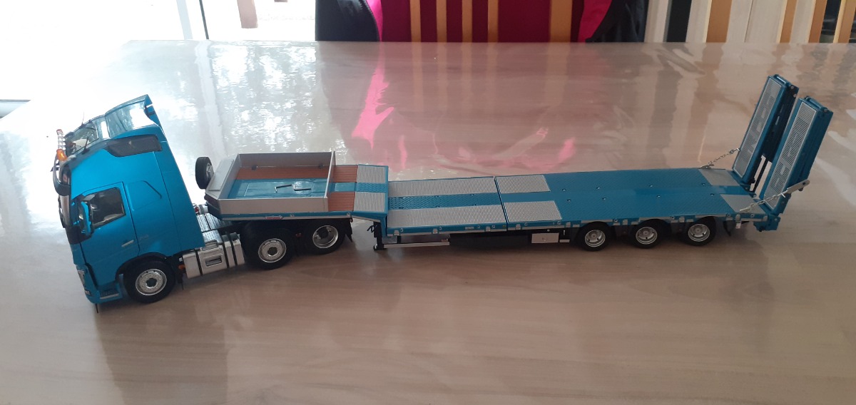 VOLVO FH16 6x2 bleu et porte engin