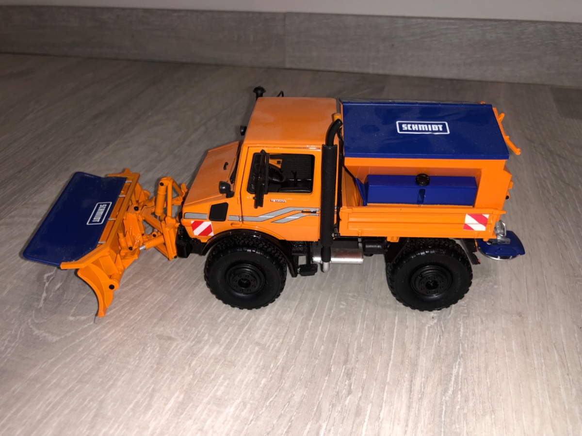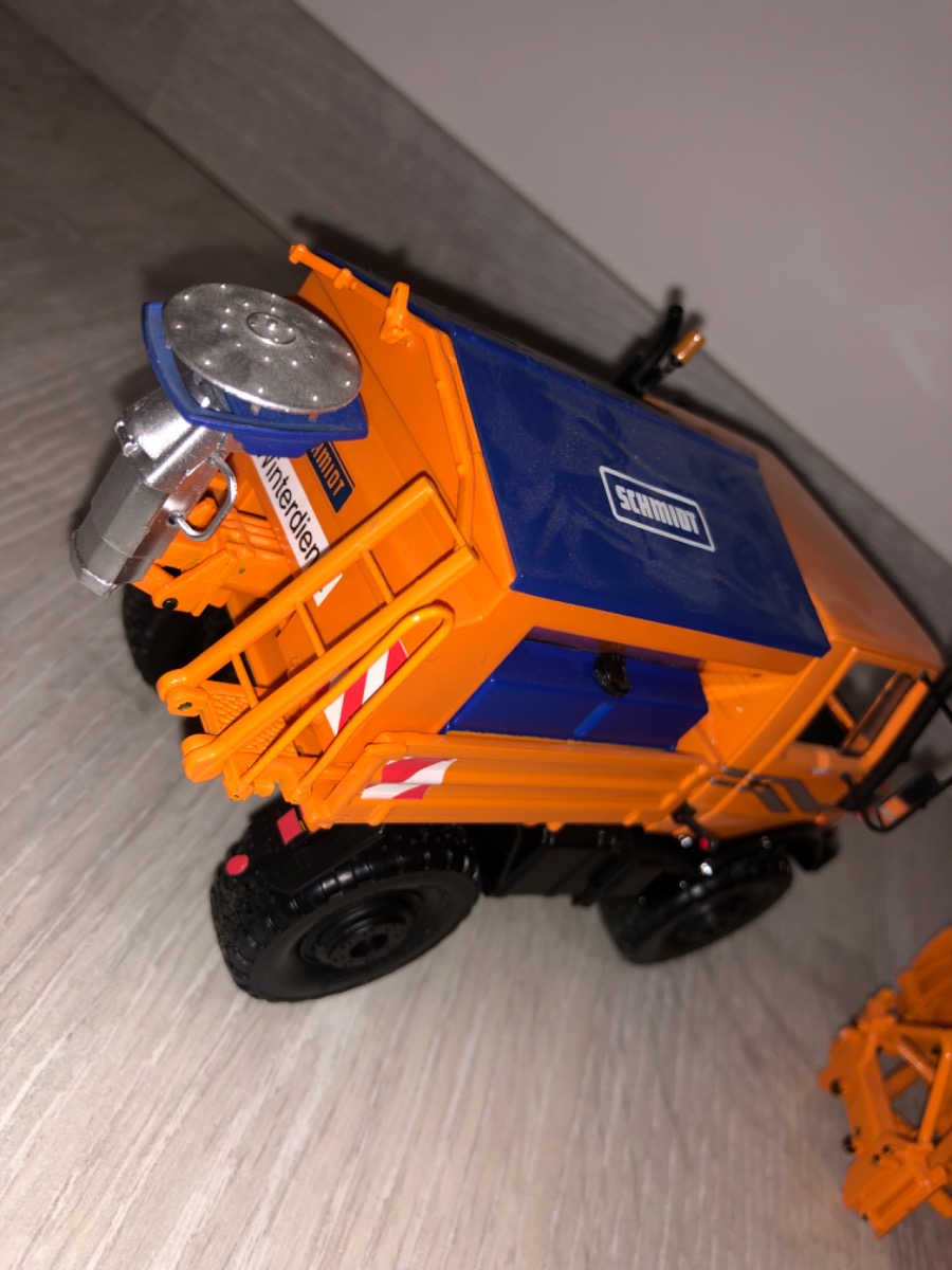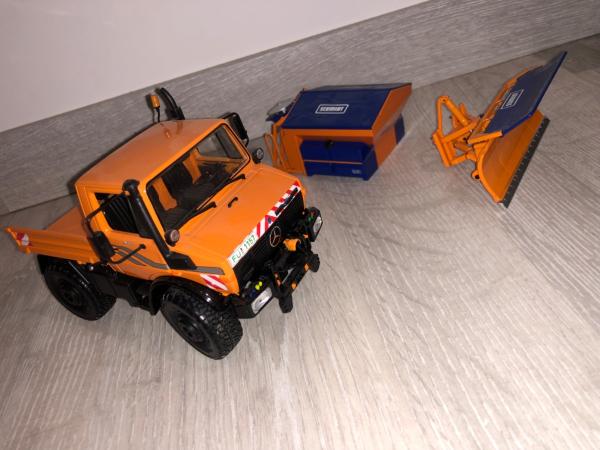Unimog communal U1600 édition limité avec ensemble de déneigement et saleuse schmidt vendu avec boîte origine
