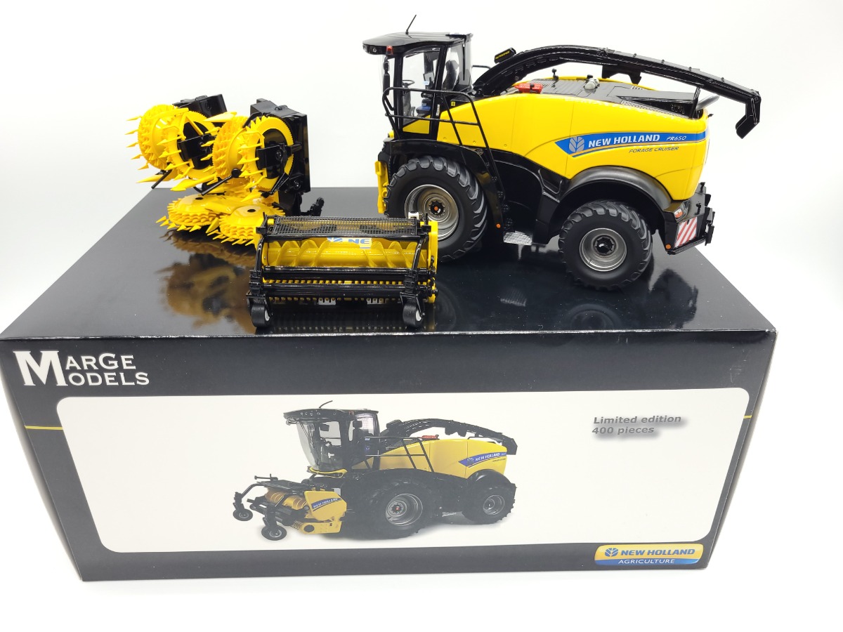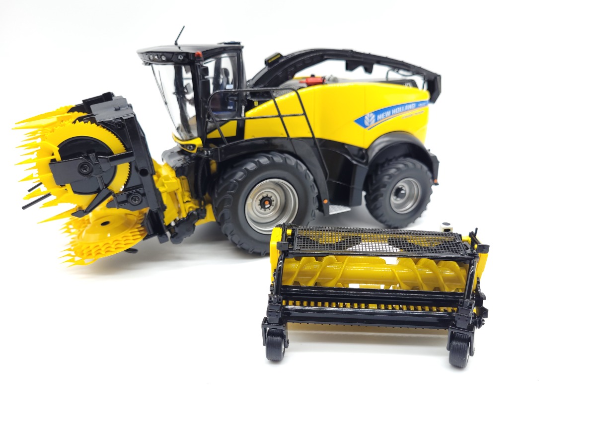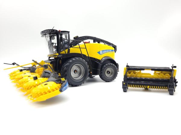 Ensileuse NH FR650 jantes grise avec bec maïs et pick up herbe.