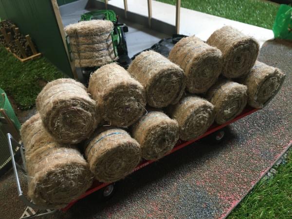 Vend Ballots de Foin fait artisanalement. Les 4 ficelles sont de couleurs bleu. Les miniatures agricoles ne sont pas à vendre