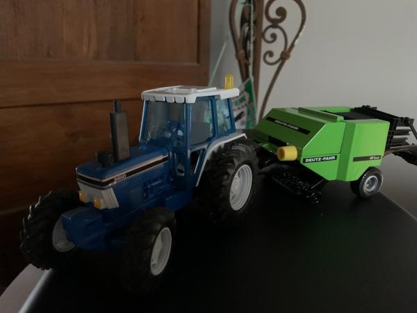 tracteur FORD 5610 dernière version britains avec presse DEUTZ-FAHR gp3 de chez siku