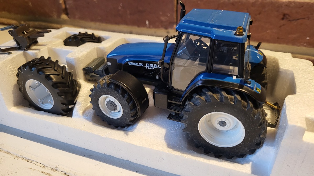 Tracteur NEW HOLLAND 8560 de chez Replicagri, modèle avec jumelage arrière, et jeu de masse avant ou relevage avant intervertible.