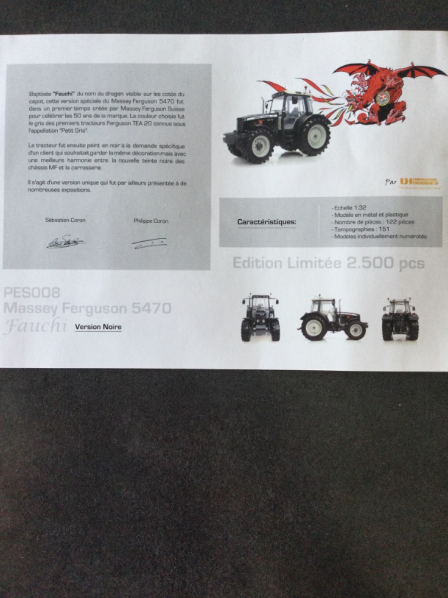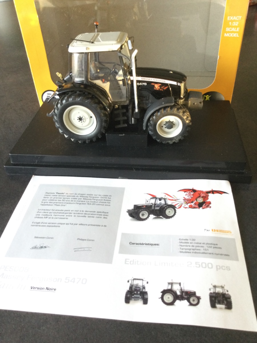 Magnifique tracteur MF 5490 Black « Fauchi » SUISSE édition limitée à 2500 ex .très propre. 1 gyro droit absent .envoi rapide et emballage soigné.