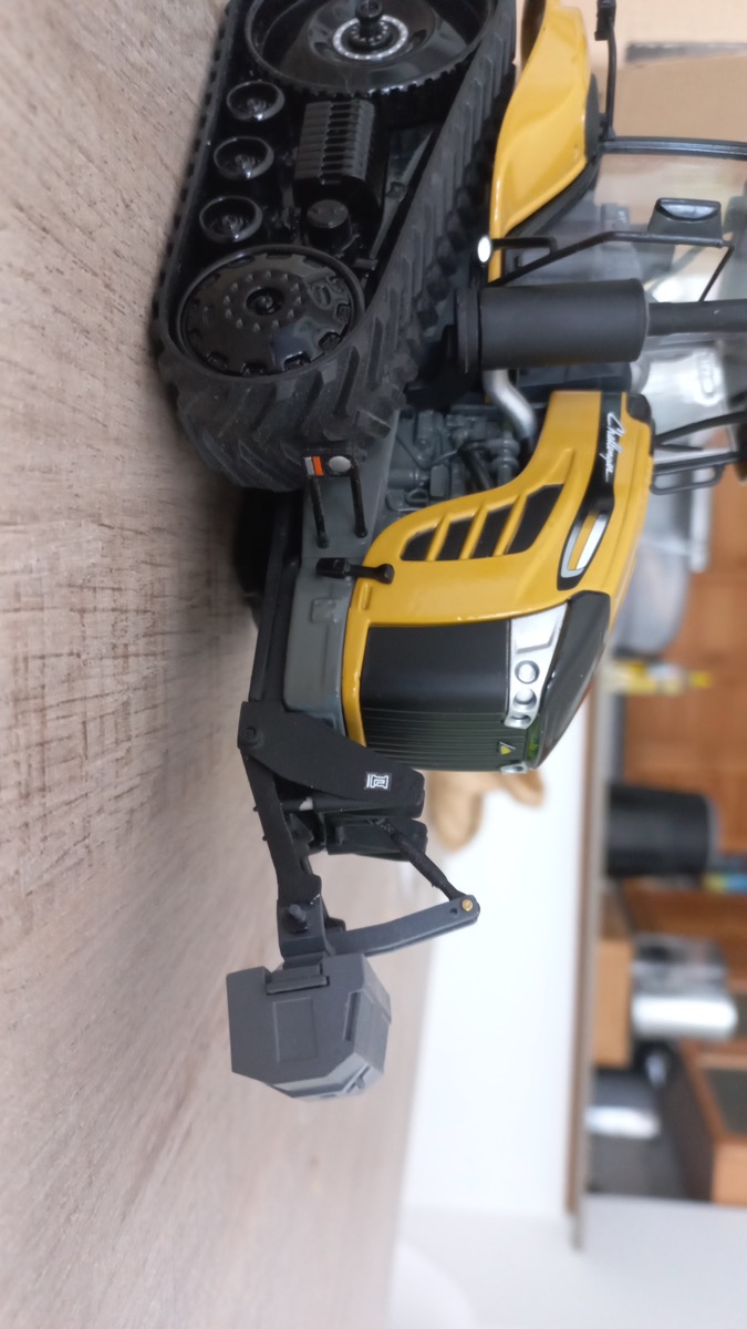 CHALLENGER mt775e, avec un relevage Laforge en alu fonctionnelle et une masse universmini.