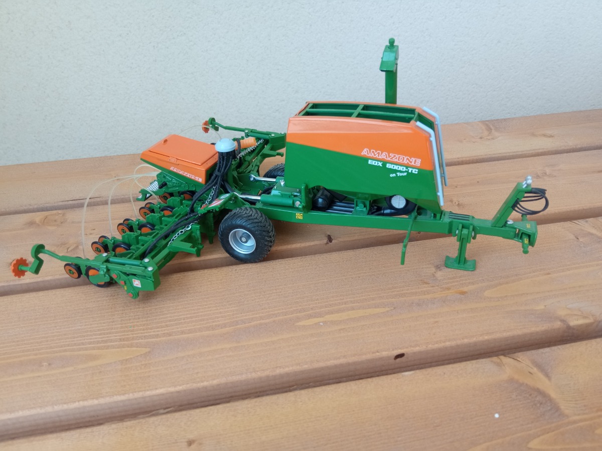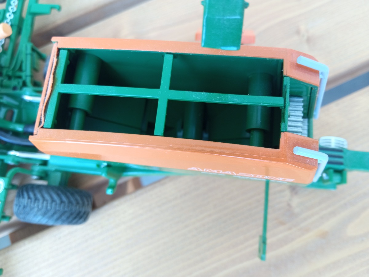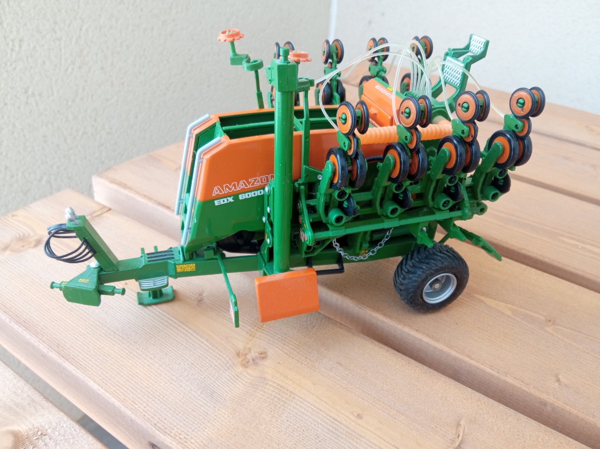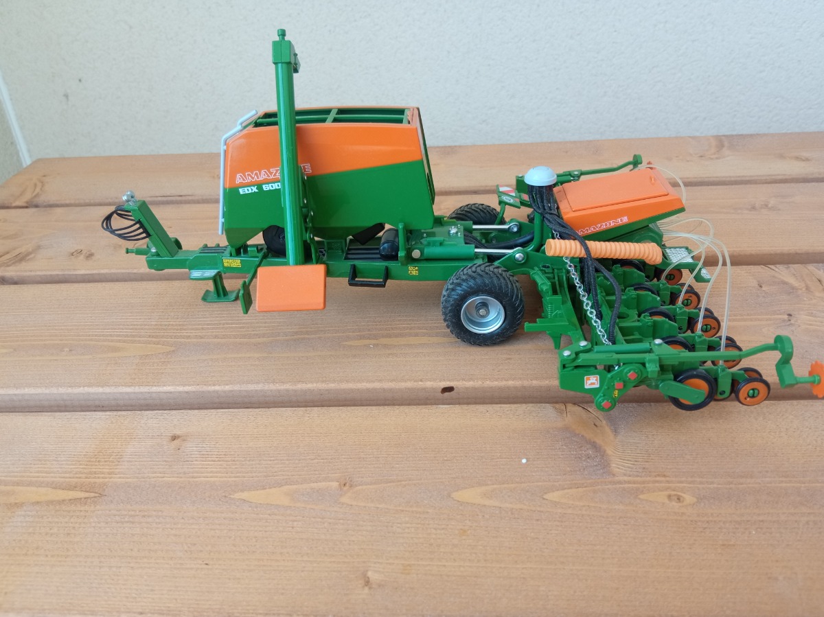 Je vends mon semoir AMAZONE EDX 6000-TC à l'échelle 1/32. Sorti de la boîte pour l'exposer en vitrine et pour les photos. Malheureusement, la bâche est cassée. (voir photo 4)