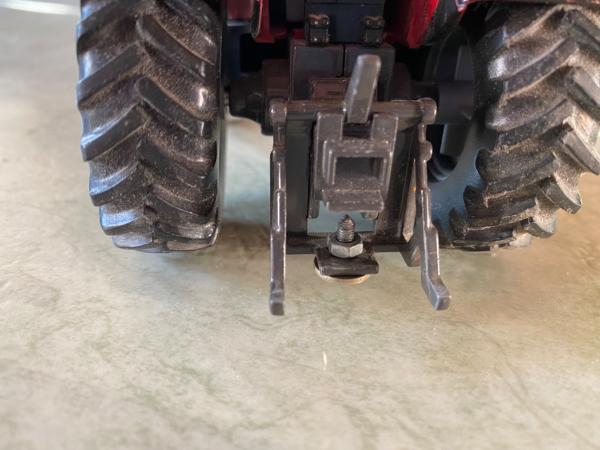 Tracteur avec le piton d’attelage cassé qui a était réparé et les autocollants du capot un peut usé