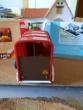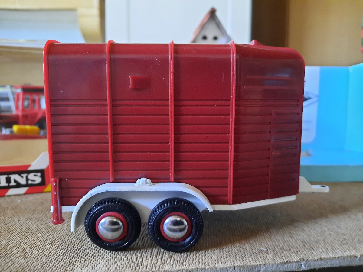 Van rouge foncé avec un cheval