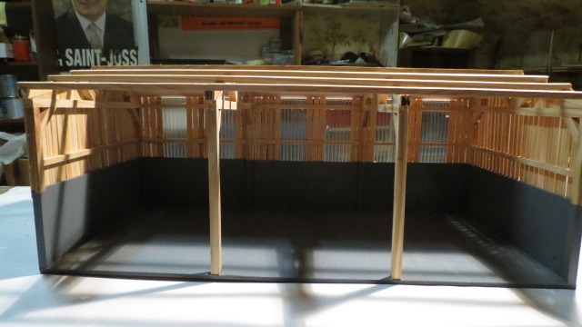 hangar 3 travée en bois avec bardage échelle 1.32 fabrication artisanal
