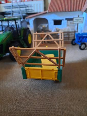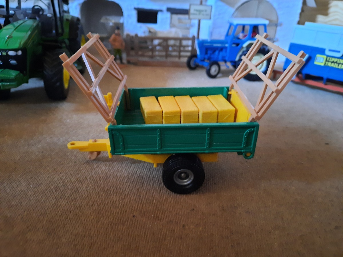 Remorque basculante verte avec haies et balles