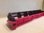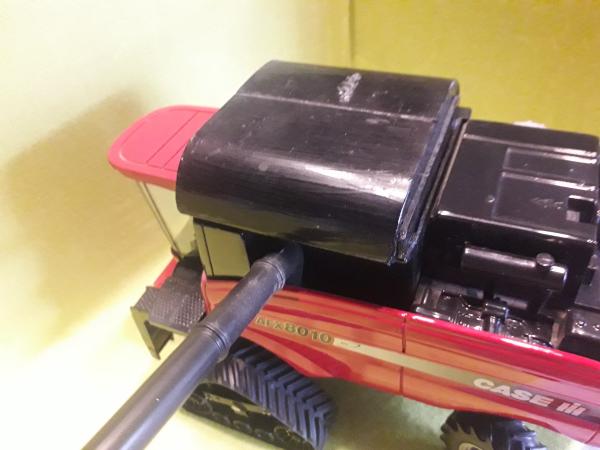 Machine équipée de chenilles de Quadtrac, trémie faite maison mais amovible. Vendue avec coupe à céréales.