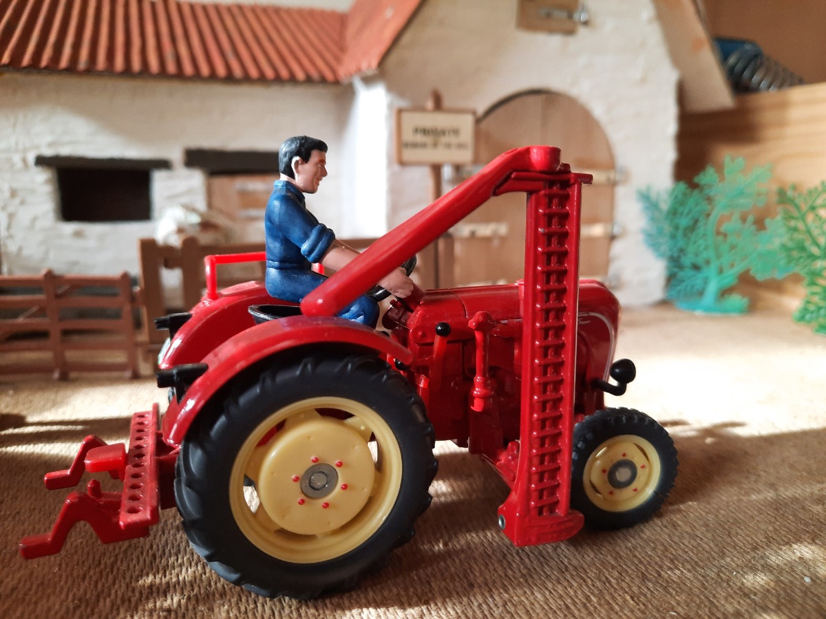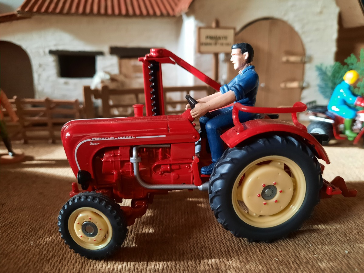 Porsche Diesel Super 308 avec Faucheuse Latérale et conducteur - SIKU Classique 3468