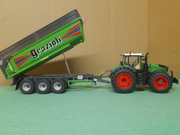 BENNE GRAZIOLI COULEUR FENDT 2 ESSIEUX DIRECTIONNELS .REHAUSSE FIXES BS 340/3 DOMEX 800 +FENDT VARIO 1050 WIKING 1.3/2 ROUES ET PNEUS AUGMENTES PHARES DE ROUTE ET DE TRAVAIL MODIFIES ANTENNE