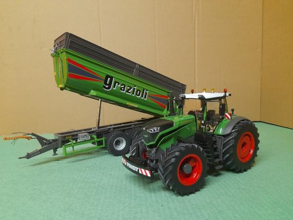 ensemble BENNE GRAZIOLI COULEUR FENDT (50 exemplaires) + FENDT 1050 VARIO PRECISION AUGMENTE WIKING 1.3/2 +BUMPER ARTISANALE FENDT BLACK