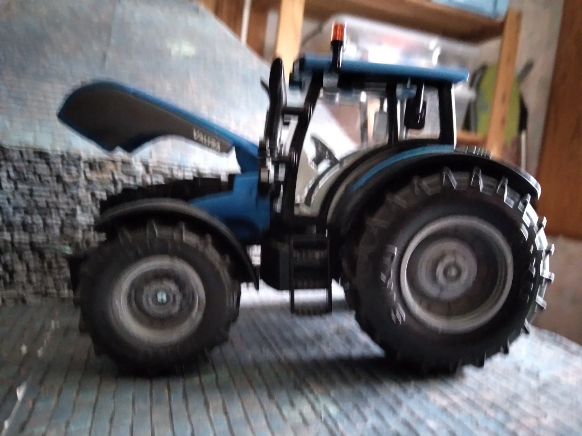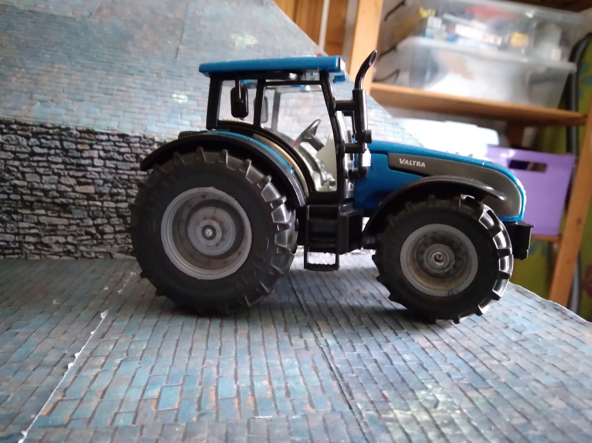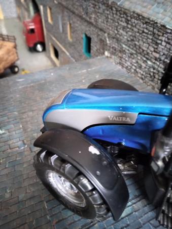 Tracteur 1:32. Roues avant à fixer, manque le relevage avant, éclat de peinture sur le garde-boue avant gauche.