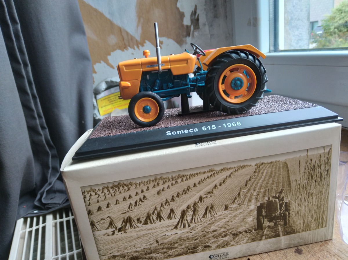 Tracteur SOMECA 615 neuf dans sa boîte d'origine, éditions Atlas. Miniature très rare et recherchée. Échelle 1:32.
