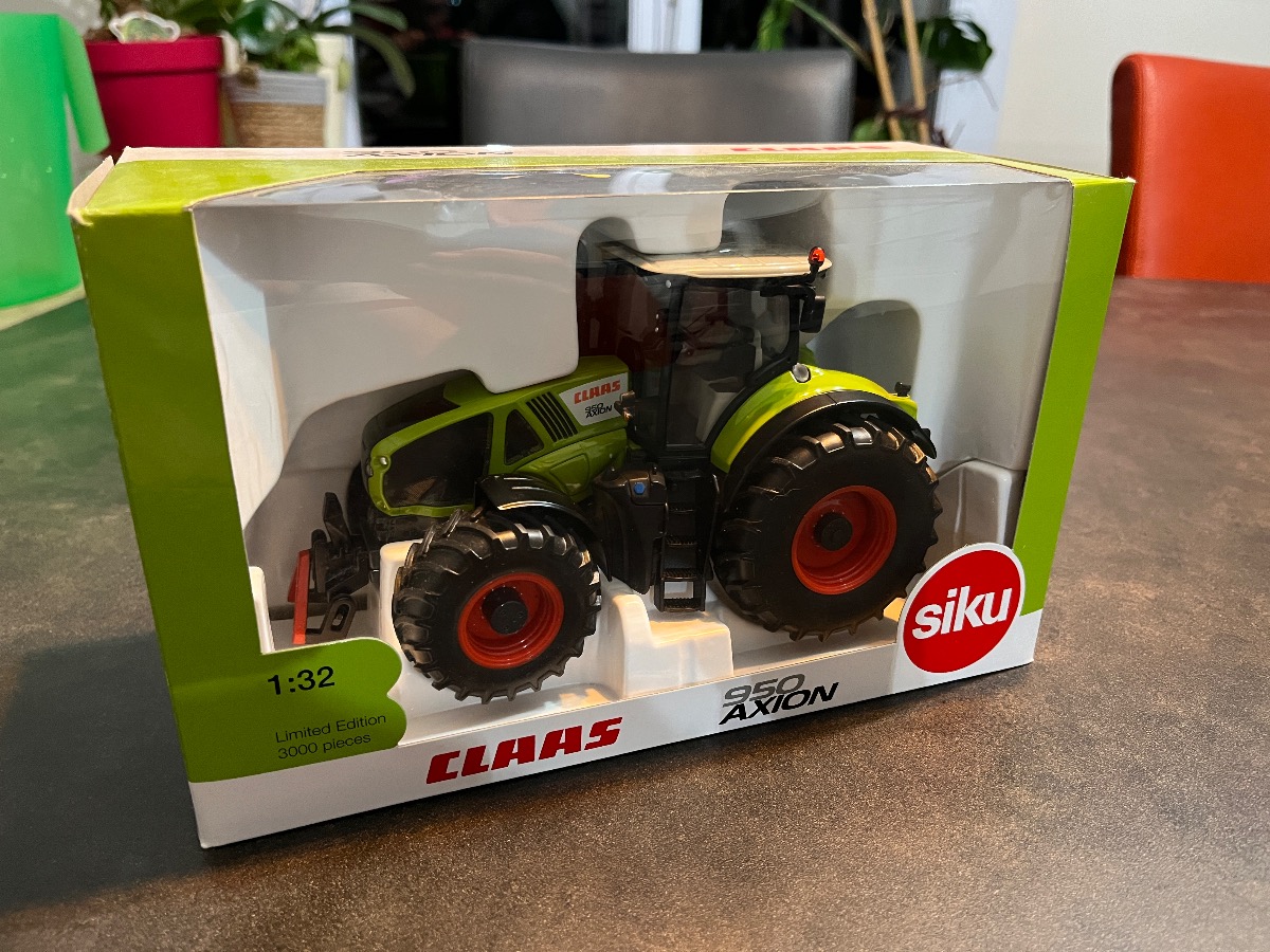 Vends tracteur CLAAS AXION 950 Siku avec sa boite d'origine CLAAS. Miniature en excellent état, exposée en vitrine.