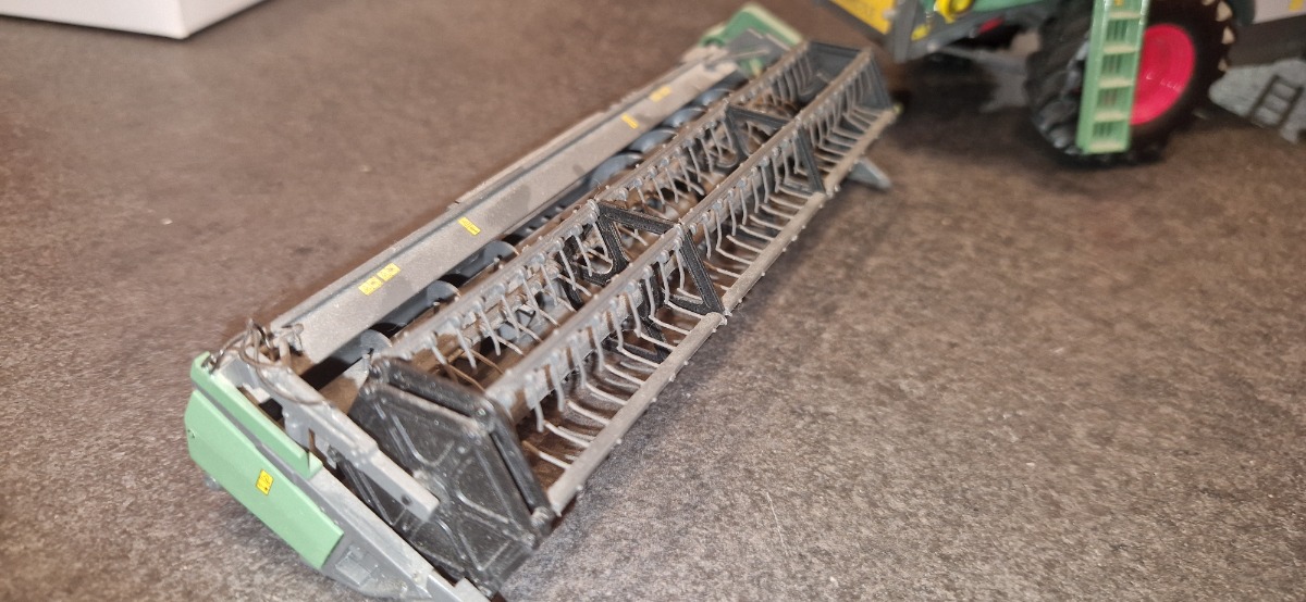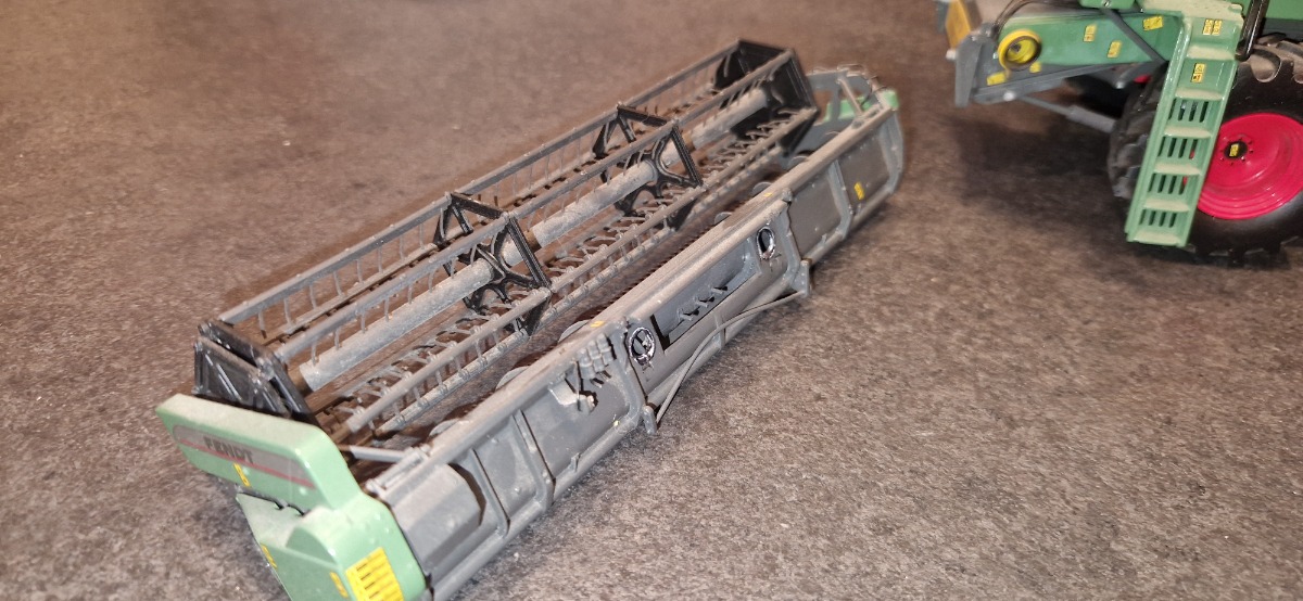 La coupe a été dissocié de la batteuse. Elle comporte quelques petits default (feu arrière, eparpilleurs, gyro absent) mais la machine reste globalement en bon état.