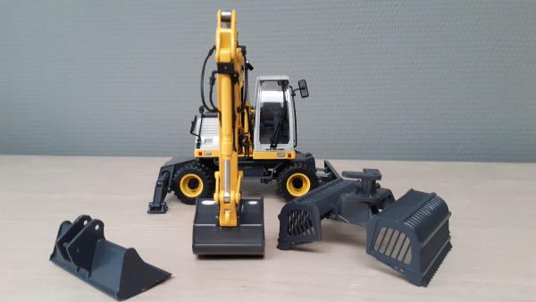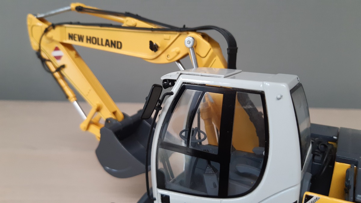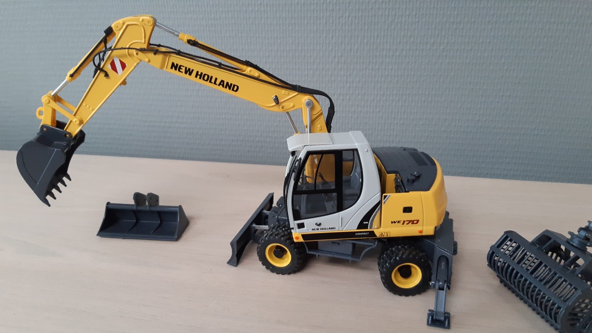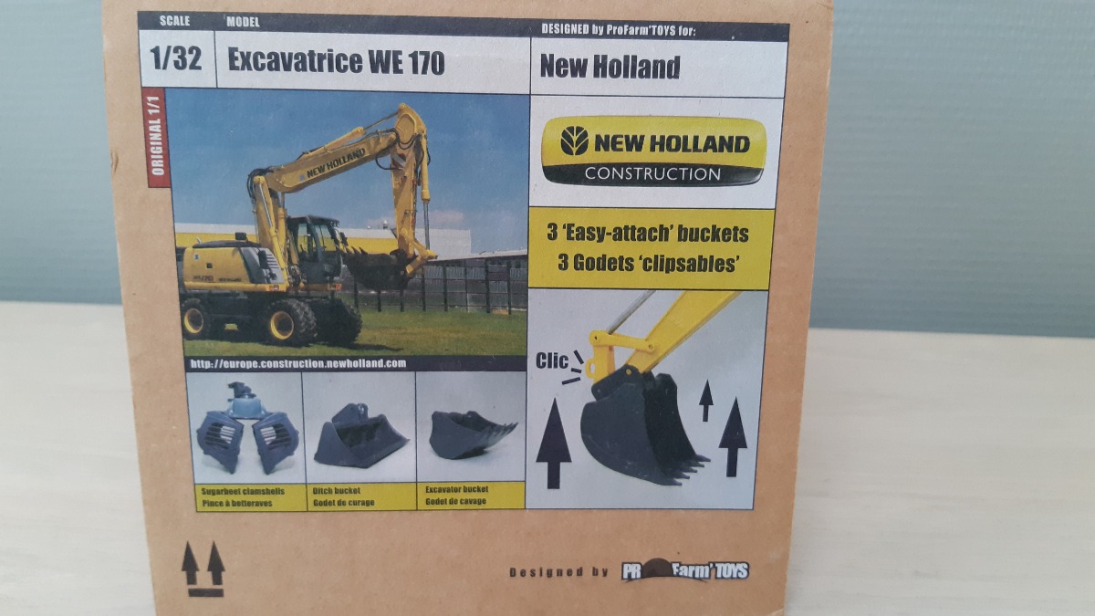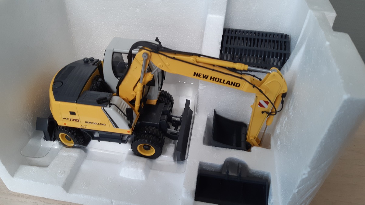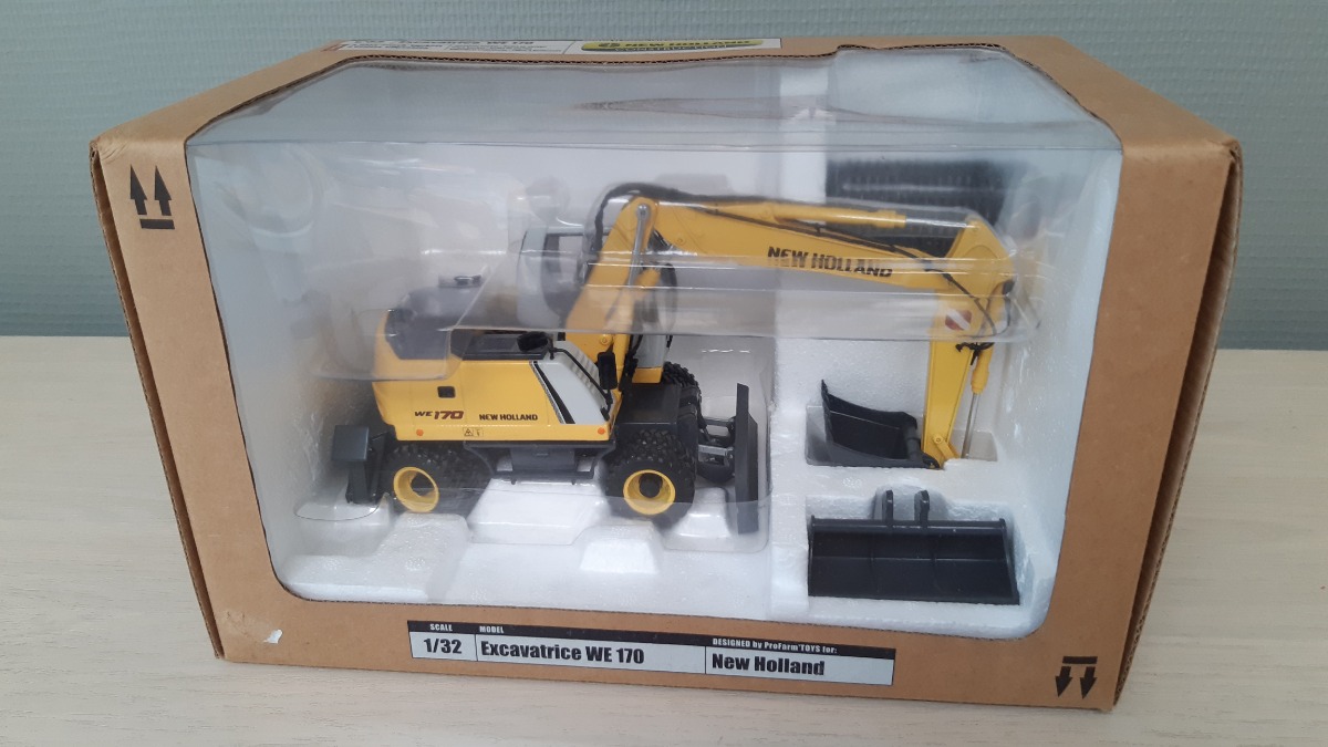 Excavatrice NEW HOLLAND WE 170 de chez Profarmtoys. Comme à l’origine, pas de défaut ou pièce manque. Avec ses 2 godets TP et 1 pince à betteraves agricole fonctionnel