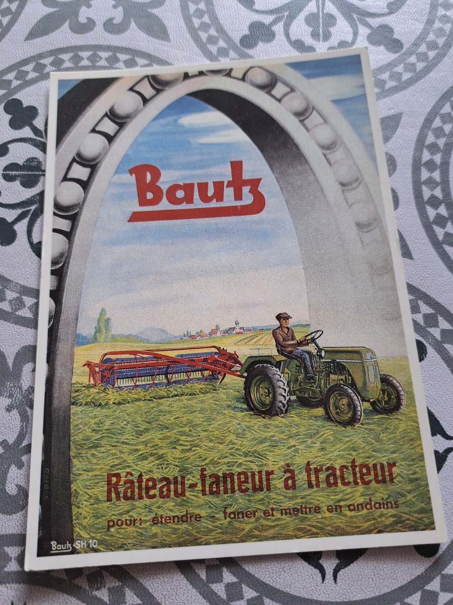 Carte postale tracteur Bautz avec rateau fanneur en très bon état voir la photo