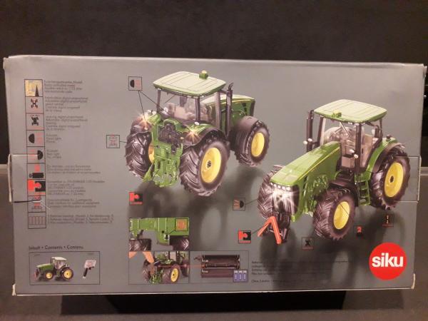 Tracteur radiocommandé neuf JOHN DEERE 8345R de chez Siku. Alimentation par piles AAA. Compatible avec les outils Siku Control.
