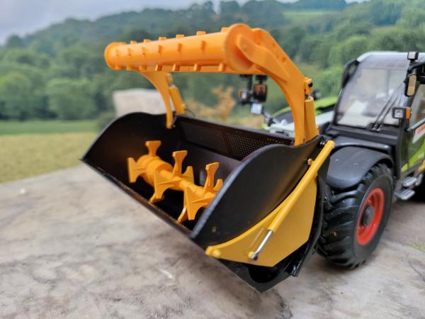 fonctionnalitées. -ouverture du godet et de la porte. -la vis à l'intérieur tourne. Il est prévu pour s'atteler sur le scorpion 7055 Wiking, chargeur JOHN DEERE Wiking;télescopique Dieci. Merlo. Je pense qu'il est possible de l'atteler sur d'autre tablier mais j'en n'ai pas d'autre sous la main pour essayer.