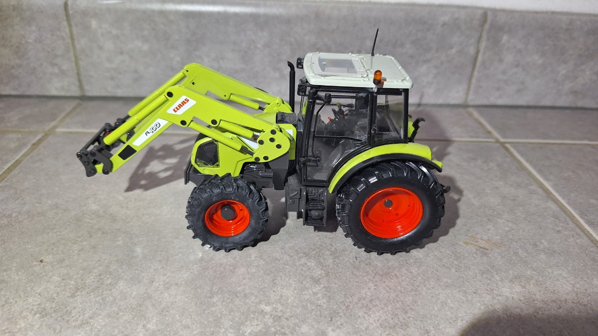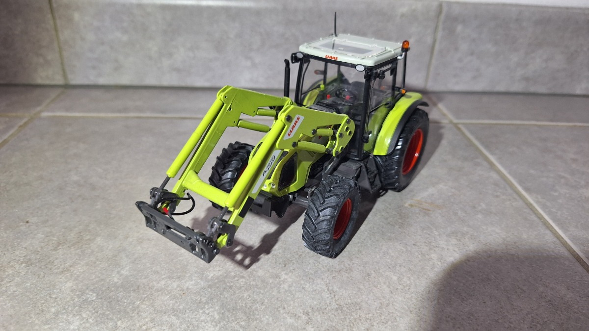 CLAAS axos 330 avec chargeur, godet originel retiré remplacé par un tablier de chargeur CLAAS universal hobbies, possibilité de rajouter un godet de CLAAS arion 430 à votre demande.