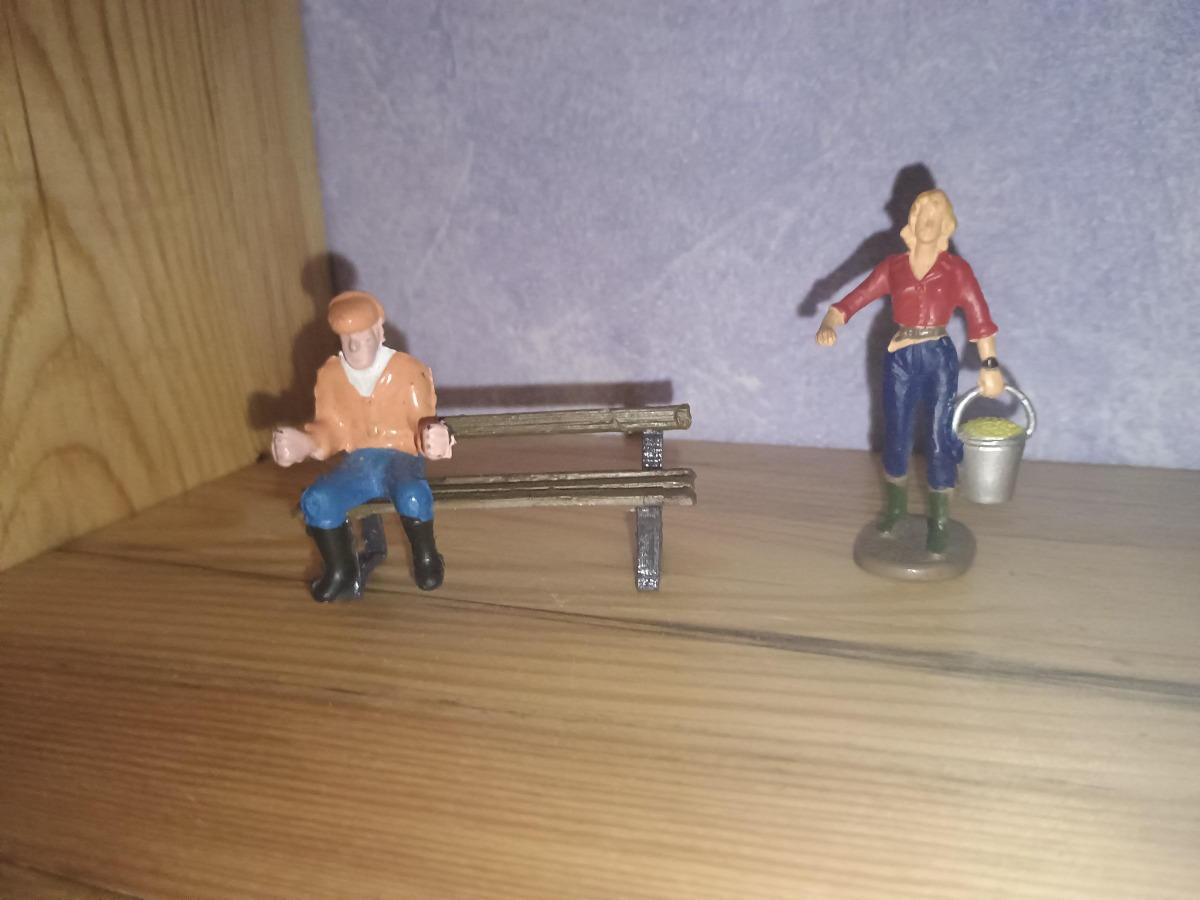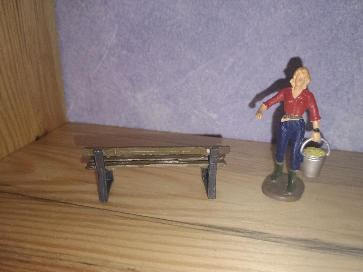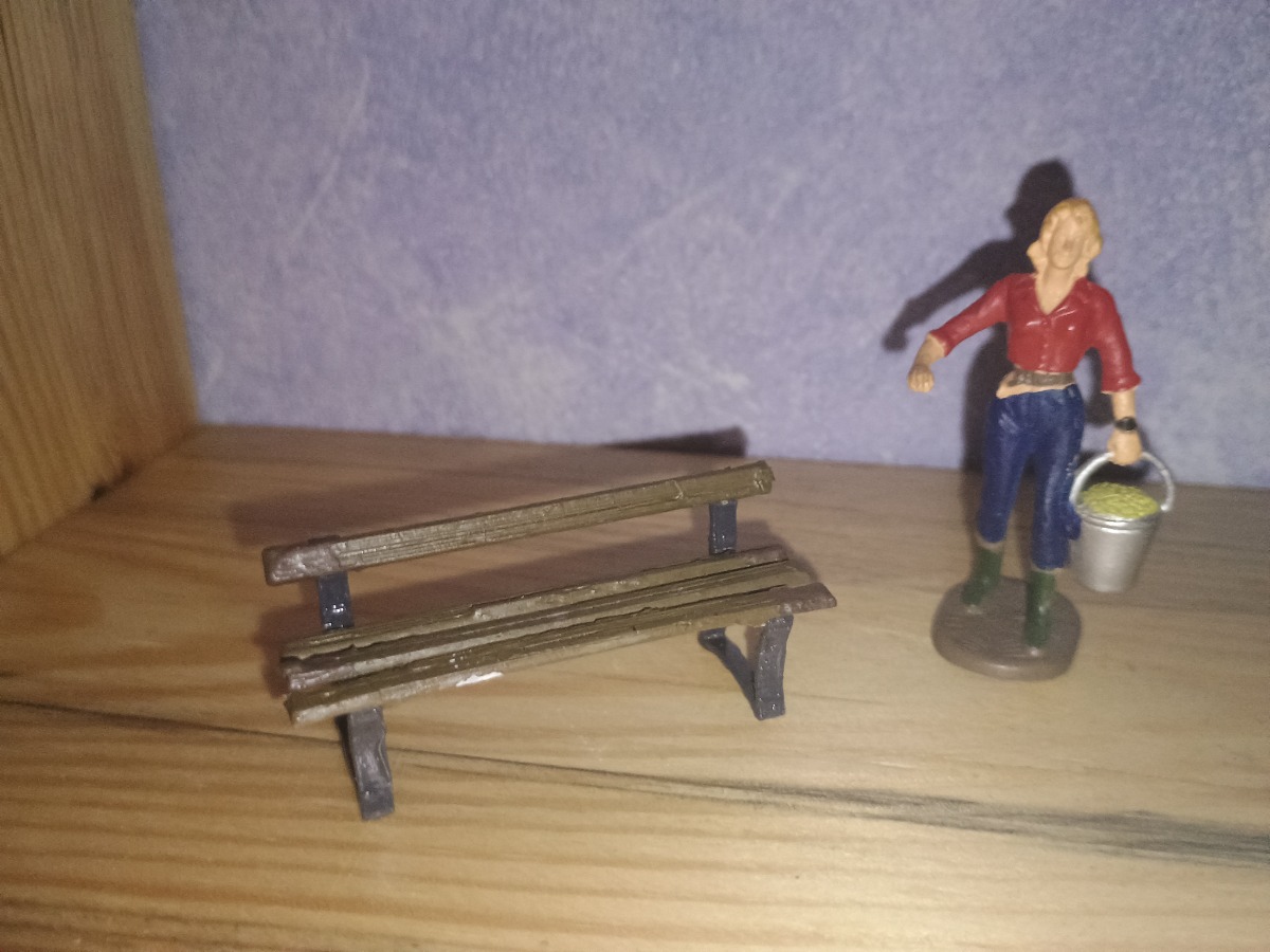 Peint en montant gris et planche marron