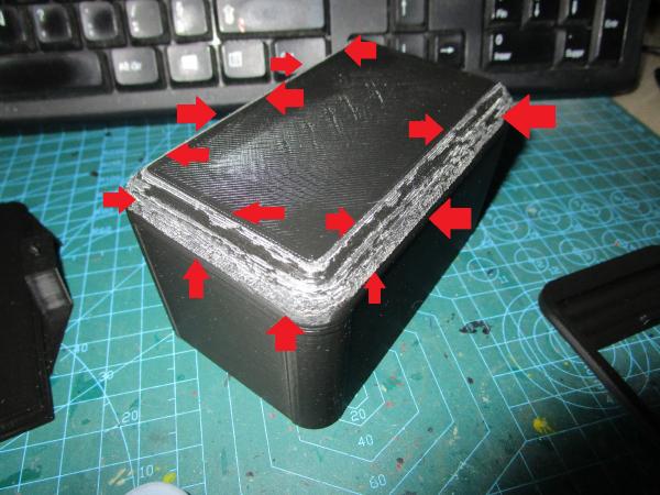 il y a des défauts d'impression sur le toit de la caisse voir sur les photos (flèches rouges).