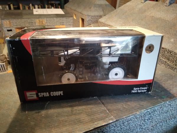 Pulvé Spra-Coupe 7650 produit par AGCO dans sa boîte d'origine. Édition limitée n° 731 sur 2500. Miniature extrêmement rare et recherchée. En excellent état. Échelle 1:32.