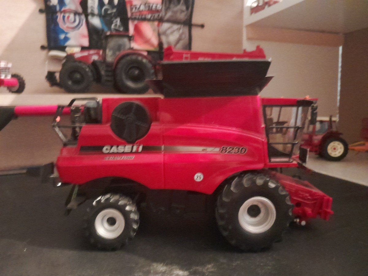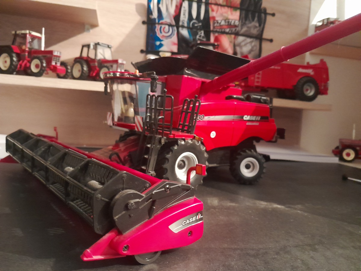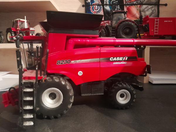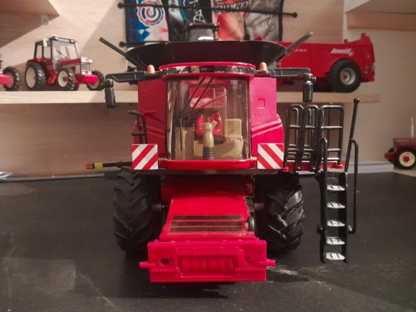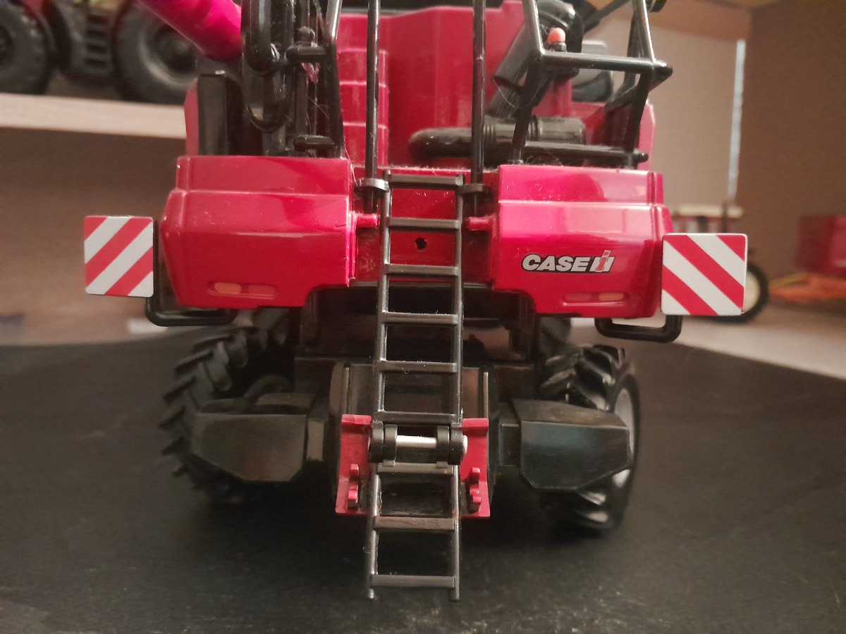 Moissonneuse Batteuse CASE IH avec coupe buse dépliable trémie non pliante marche pied avant et échelle arrière coulissant.