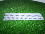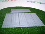 9 caillebotis. Longueur de l'ensemble 33.75 cm. longueur d'un élément 12.5 cm. largeur d'un élément 3.75 cm.