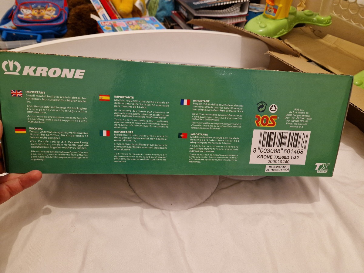Je vends une remorque Krone TX-560 D 3 essieux, échelle 1/32ème de la marque ROS.