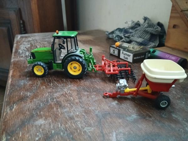 Tracteur JOHN DEERE 5615f siku avec herse et distributeur d engrais.en très bon état sera emballé avec soin