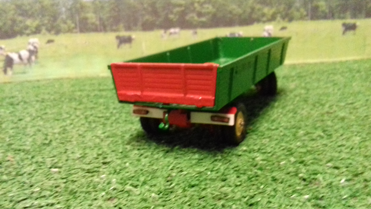 plateau repeint avec attelage refait artisanal .manque 2 ergots de maintient de ridelle arrière sur les cotés ,ne tiens que par celui du milieu , mais ne tombe pas ,plus feux arrières artisanales