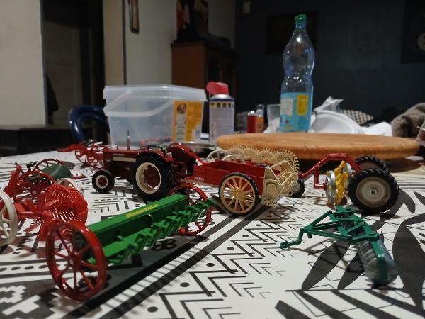 Tracteur ih replicagri 523 avec barre à troue et 3e point +matériel ancien siku et artisanale. Serons emballé avec soin.
