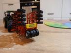 Déchaumeur frontal modifié à partir du semoir KUHN espro 6000. Fabrication d’une plaque avec panneau convoi agricole, rajout de flexibles au niveau du vérin et fabrication de l’attelage 3 points. Était monté sur un JOHN DEERE 8r. Quelques petits défauts de peinture. Sera envoyé dans la boîte d’origine de l’espro 6000.