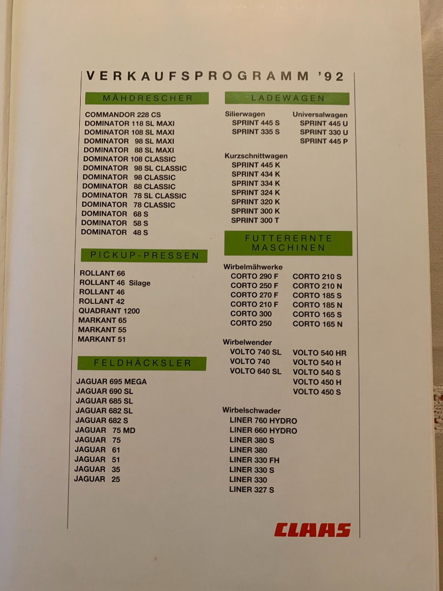 Prospekte CLAAS Produktprogramm 1992 Mähdrescher Häcksler
